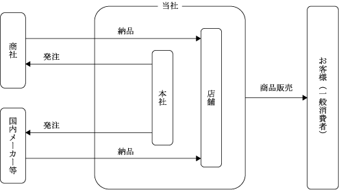 Section titled “3 【事業の内容】”当社は、全国のショッピングセンター(以下「SC」という。)内のテナントにセレクトショップ(注)「ブランドショップ ハピネス」及び「GINZA Happiness」を展開しており、主にインポートブランド品を販売しております。