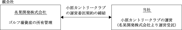 Section titled “3 【事業の内容】”当社グループは、当社及び当社親会社名晃開発株式会社で構成しており、当社はゴルフ場の運営及びゴルフ会員権の販売等を行っております。また、親会社の名晃開発株式会社と当社との間では以下の通り小原カントリークラブの運営委託契約を締結し、継続的な取引を行なっております。