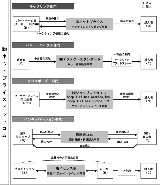 | Eコマース事業 | ギャザリング部門 | 株式会社ネットプライス | オンラインショッピング事業 | 連結子会社 |