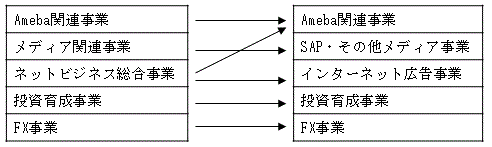 なお、報告セグメントにつきましては、第2四半期連結会計期間において、連結子会社であった㈱サイバーエージェントFXの全株式を売却し、FX事業から撤退したことに伴い、平成25年9月30日現在では、Ameba関連事業、SAP・その他メディア事業、インターネット広告事業、投資育成事業に区分しております。