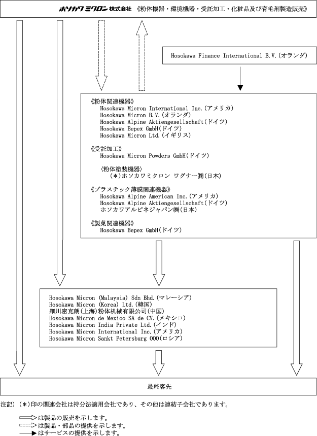 | 平成14年10月 | 研究開発部門の営業を当社の子会社であるホソカワパウダエンジニアリング㈱に承継させるため会社分割を実施し、同社の商号を㈱ホソカワ粉体技術研究所に変更。 |