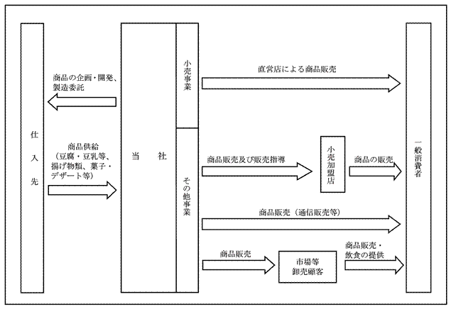 Section titled “3【事業の内容】”当社は、主に豆腐・豆乳等大豆加工食品及び関連商品の企画・開発・販売、小売加盟店に対する販売指導等を中心とした豆腐版SPAを行っております。