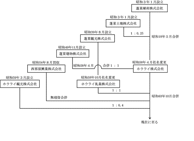 | 昭和63年10月 | ホウライ乳業株式会社、ホウライ観光株式会社及び西那須興業株式会社の3社を吸収合併。 |