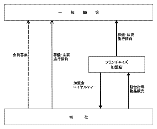Section titled “3【事業の内容】”当社は、葬儀請負を中心とした葬祭事業と、当社のこれまでのノウハウを生かした葬儀会館運営のフランチャイズ事業を行っております。