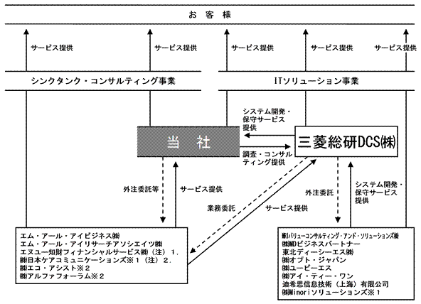 当社及び連結子会社である三菱総研DCS株式会社、MRIバリューコンサルティング・アンド・ソリューションズ株式会社、株式会社MDビジネスパートナー、東北ディーシーエス株式会社、株式会社オプト・ジャパン、株式会社ユービーエス、株式会社アイ・ティー・ワン、迪希思信息技術(上海)有限公司、持分法適用会社である株式会社Minoriソリューションズ