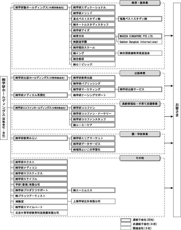 | 平成23年4月 平成23年12月 平成24年6月 平成24年9月 | ㈱学研ナーシングサポートを設立。(現子会社) ㈱駒宣を買収。(現子会社) ㈱学研スマイルハートを設立。(現子会社) 上海学研広告有限公司を設立。(現子会社)㈱ユーミーケアを買収。(現連結子会社) |