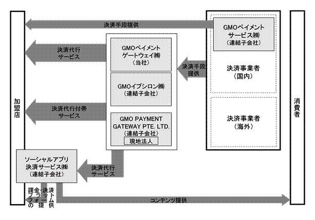 また、当社連結子会社GMOペイメントサービス㈱における決済手段の提供(GMO後払い)や、当社連結子会社ソーシャルアプリ決済サービス㈱におけるスマートフォン向け会員認証・決済プラットフォーム(mopita)の提供などを行っております。