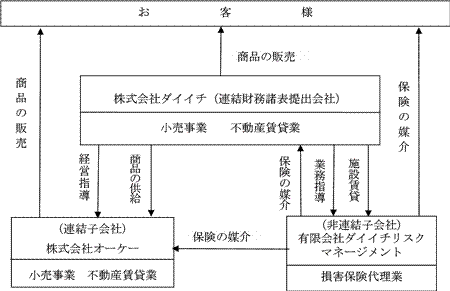 Section titled “3【事業の内容】”当社グループ(当社及び当社の関係会社)は、当社及び子会社2社で構成され、小売業を主な内容として、事業活動を展開しております。また、当社グループは、食料品主体のスーパーマーケット事業及びこれらの付帯業務の単一セグメントであります。