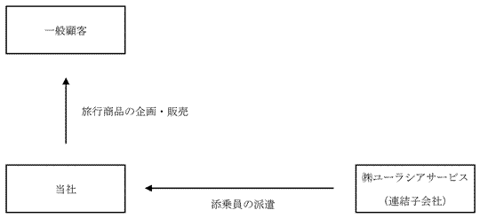 | ㈱ユーラシアサービス | 東京都千代田区 | 30,000 | 人材派遣業 | 100 | - | 当社が主催するツアーへの添乗員、内勤業務者の派遣。 当社取締役3名が同社の取締役を兼任しております。 |