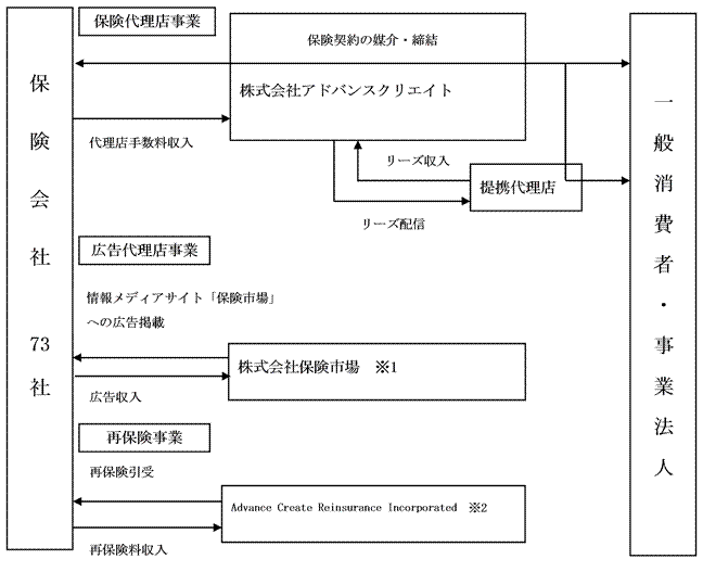 ※1 株式会社保険市場は、当社の統一ブランドであります「保険市場」(平成20年4月商標登録)の商標管理及びWeb広告・ポスティング等の広告代理店事業を行っております。
