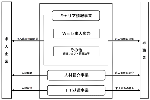 当社は、中途採用マーケットにおける「Human Resource Solution Company」として、キャリア志向の高い「エンジニア」、「ビジネスパーソン」及び「女性」をターゲットとし、求職者、求人企業のそれぞれに多様な商品・サービスを提供することにより、双方の課題解決に取り組んでおります。