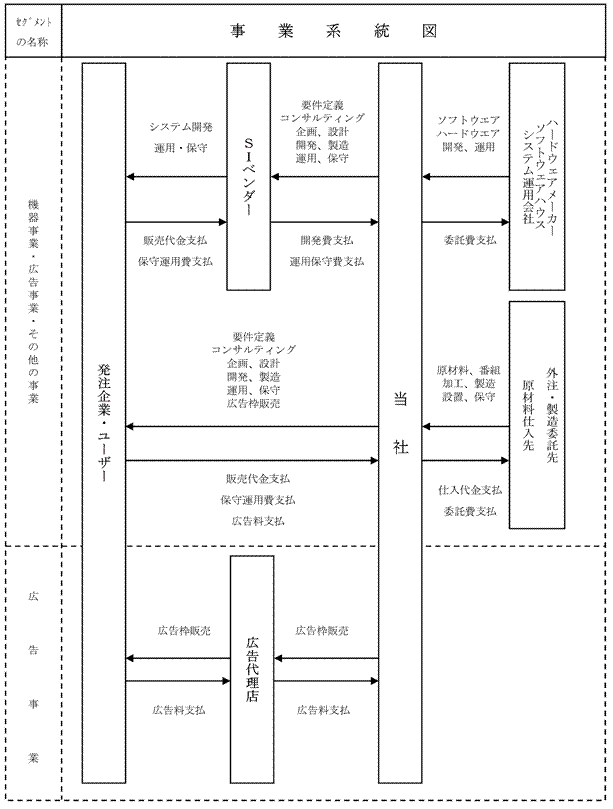 Section titled “3【事業の内容】”当社は、デジタルサイネージ(電子看板)を中心とした事業展開を行っており、端末機器の製造・保守をメインとする「機器事業」、デジタルサイネージを使用した「広告事業」、システム受託開発及びコンテンツ制作をメインとする「その他の事業」より構成されております。