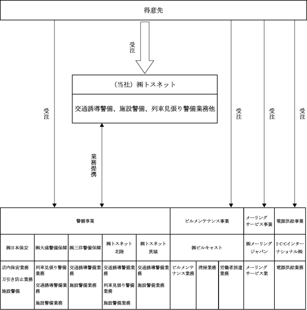 Section titled “3 【事業の内容】”当社グル-プ(当社及び関係会社)は、当社及び連結子会社8社、持分法適用非連結子会社7社で構成され、宮城県公安委員会より認定を受けて(番号:第5号)交通誘導警備を主力とした警備業を主な事業としております。