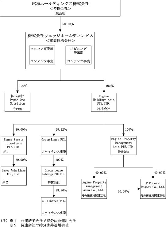 Section titled “3 【事業の内容】”当社グループ(当社及び当社の関係会社)は、当社(株式会社ウェッジホールディングス)、子会社7社、関連会社3社及び親会社1社により構成されており、ファイナンス事業及びコンテンツ事業の2事業領域を主たる業務としております。