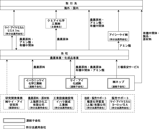製品の主要原料を、連結子会社イハラニッケイ化学工業㈱、ケイ・アイ化成㈱より購入しております。