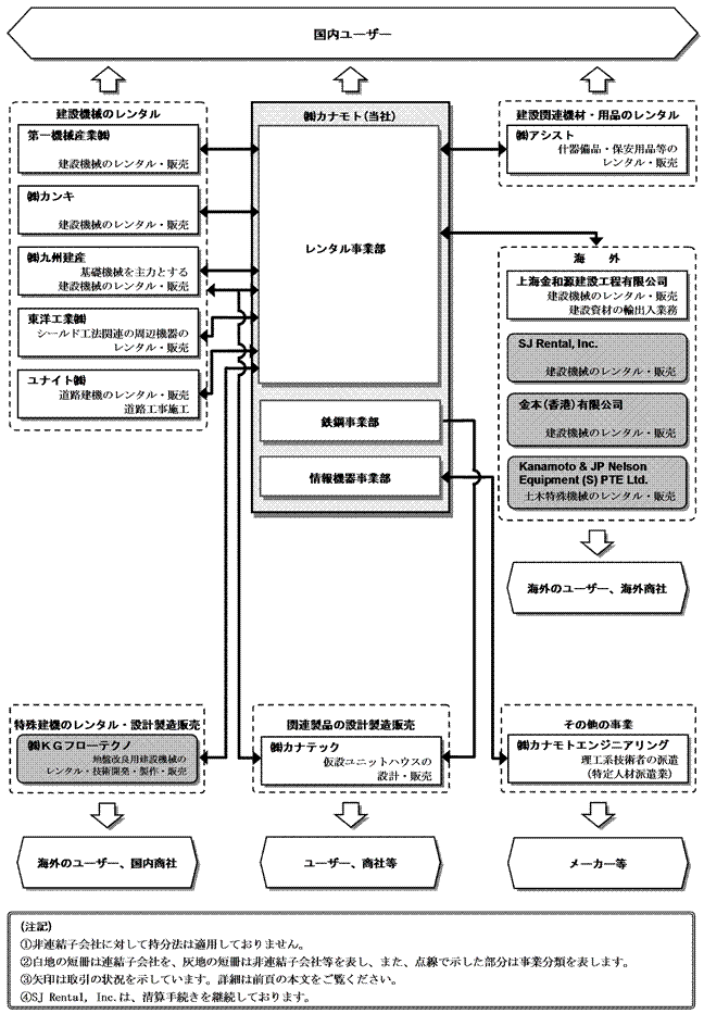 ㈱アシスト[連結子会社]では什器備品・保安用品等のレンタル・販売を行っております。㈱カナテック[連結子会社]では仮設ユニットハウスの設計・販売を行っております。当社は必要に応じて、各社からレンタル用資産を借り受けて他社へレンタルを行っております。また、当社は必要に応じて仮設ユニットハウスを購入しております。