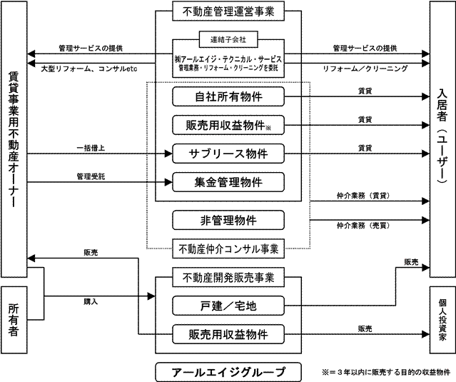 管理業務は、連結子会社である㈱アールエイジ・テクニカル・サービスが主体となりサービスを提供しております。「ユーザーの満足=オーナーの満足」であり、快適な住環境を維持すべく、「清潔・安心・安全」の管理三原則をモットーに管理物件を巡回し、付加価値を高める為のリノベーションや修繕工事等のサービス提供を行っております。