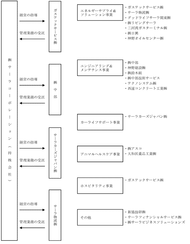 当社は、平成14年5月1日、株式移転により、ガステックサービス株式会社、株式会社中部及び新協オートサービス株式会社(現サーラカーズジャパン株式会社)の完全親会社として発足いたしました。
