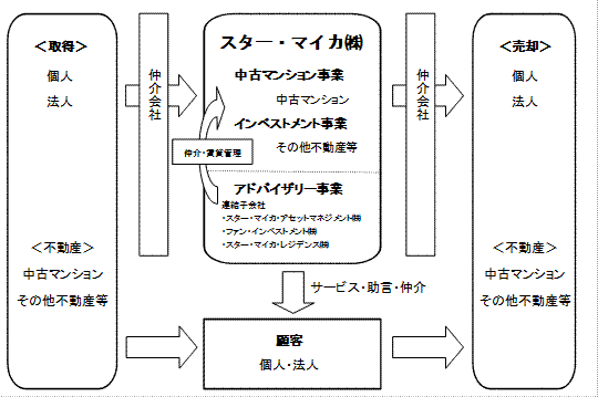| 平成14年8月 | スター・1号ファンドの不動産保有SPC(特別目的会社)として有限会社スター・ファンド(平成 21年12月 吸収合併により解散)を設立し不動産ファンド運営事業(現・中古マンション事業)を開始 |