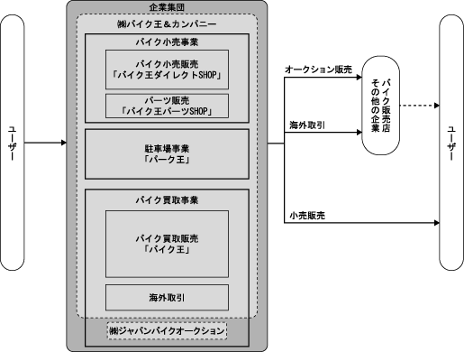 | 平成15年11月 | パーツ販売店「バイク王パーツ(現 バイク王パーツSHOP)」を出店(平成24年1月に閉店。WEB販売は継続) |