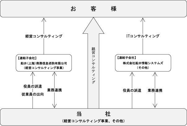 主な関係会社…当社、船井(上海)商務信息咨詢有限公司、株式会社船井総合研究所分割準備会社、