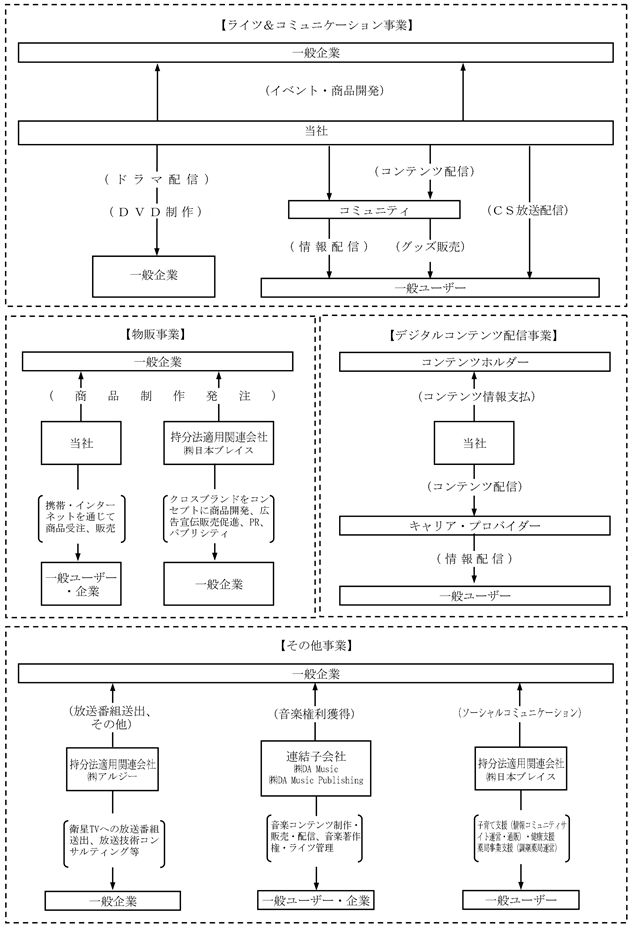 | 平成17年11月 | 株式会社ドーンエンターテイメントジャパン(平成23年3月、株式会社DA Musicへ社名変更)、有限会社ドーンミュージック(平成23年3月、株式会社DA Music Publishingへ社名変更)(現連結子会社)を設立。 |