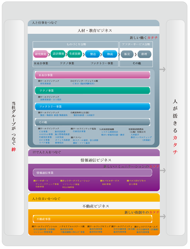 | 平成12年12月 | ㈱ワールドグリーンスタッフ(現・㈱ワールドレジセリング)を子会社化(現・連結子会社) |