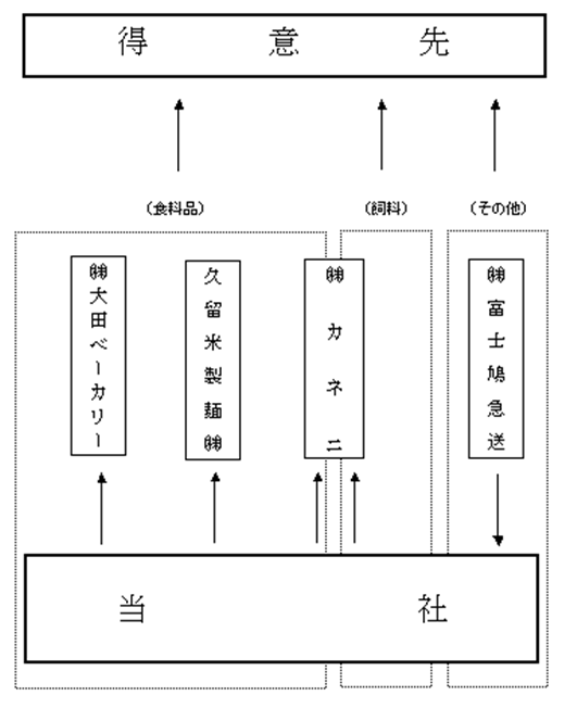 当社が小麦粉、ライ麦粉、ふすま(副産物)の製造を行っております。販売については、当社が直接若しくは(株)カネニ(連結子会社)をはじめとする特約店を通じて販売しております。