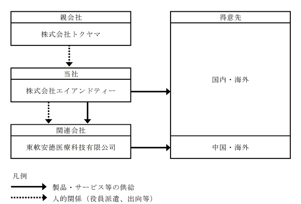 当社はトクヤマの連結子会社であり、同社グループのライフアメニティーセグメントに属する1社でありますが、当社以外、主として臨床検査に関する製品及びサービスを顧客に提供する事業を営む会社はなく、自ら経営責任を持ち事業経営を行っており、人的関係以外、重要な営業上の取引はありません。また、関連会社である東軟安徳につきましては、主に中国の臨床検査室に必要な製品の開発・製造・販売・カスタマーサポートの事業を行っております。