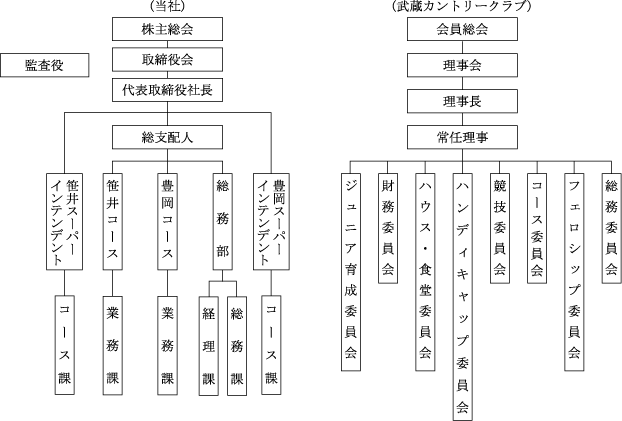 なお、当社の株主は、武蔵カントリークラブに入会しなければ当社のゴルフ場の利用が出来ない。当社並びに武蔵カントリークラブの経営組織は次の通りである。