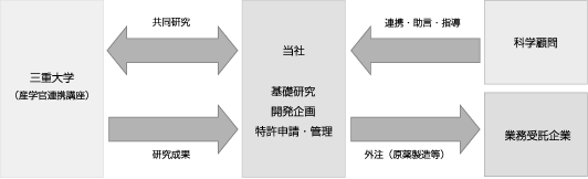 | 平成18年12月 | 臨床的に必要性の高いシード化合物の探索を行う創薬事業と臨床試験及び治験を行う人材の育成、拠点の整備、システム研究を行うことを目的として、国立大学法人三重大学と産学官連携講座共同研究契約を締結し、同大学内に「臨床創薬研究学講座」を開設 |