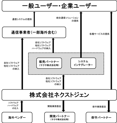 スマートフォンやタブレット端末対応の通信サービスや、クラウドを利用した付加価値サービスを行っております。その対象は主に一般企業ですが、通信事業者向けのスマートフォン&クラウドサービスを含みます。その他には企業向け当社製品であるSIPサーバー「NX-E1000」の販売、サービスを行っております。