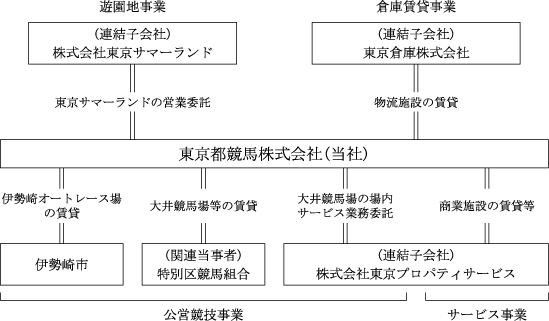 この間、競馬施設事業(現 公営競技事業)をはじめとして、時代の推移とともに変革する経営環境に対応するため、オートレース施設事業(現 公営競技事業)、遊園地事業、倉庫賃貸事業及びサービス事業に進出しております。