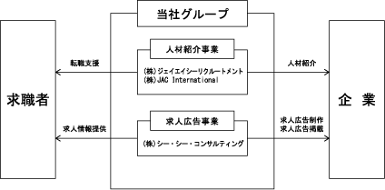 | 平成14年8月 | JAC Singapore Pte Ltd(シンガポール 現 JAC Recruitment Pte Ltd)、JAC Recruitment UK Ltd(英国)、AGENSI PEKERJAAN JAC Sdn Bhd(JAC Recruitment Sdn Bhd(マレーシア)の100%出資事業運営子会社)各社と業務提携契約を締結し、有料職業紹介事業の同地域に対する海外紹介の免許を追加取得 |