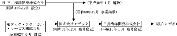 | 昭和63年12月 | 株式会社モデックに商号を変更し、旧 三井海洋開発株式会社の事業を継承。 |
