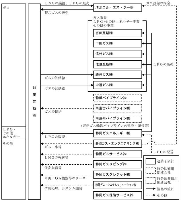 袋井ガス㈱、中遠ガス㈱の連結子会社2社は、当社からガスの卸供給を受けて、ガスの供給、販売を行っております。