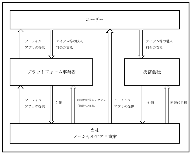 Section titled “3【事業の内容】”当社は、インターネットを通じたソーシャルアプリの企画・開発・提供を行うソーシャルアプリ事業を主たる事業としています。当社の提供するソーシャルアプリについては、グリー株式会社が運営する「GREE」を中心とした主要なソーシャルゲームプラットフォーム(注1)を通じてサービスを提供しており、ユーザーへの課金、料金の回収は当該ソーシャルゲームプラットフォーム事業者に委託するとともに、当社はその対価としてシステム利用料等を支払っております。また、スマートフォンへの移行に伴い、ソーシャルゲームプラットフォーム事業者は介さないネイティブアプリケーション(注2)の提供も行っております。