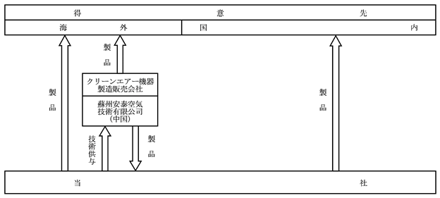 Section titled “3【事業の内容】”当社グループは、当社及び関連会社1社で構成され、半導体・電子工業分野及びバイオロジカル分野を主な需要先とした、クリーンエアーシステムの企画、製造、サービス等の総合技術の販売という単一セグメントに属する事業を営んでおります。
