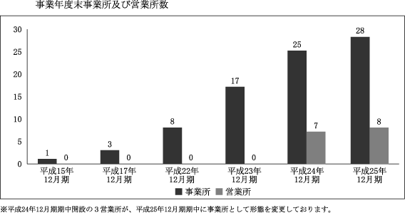 | 平成19年7月 平成20年6月 | 訪問介護における拠点として本社に「ヘルパーステーション デューン」を開設。(注)1居宅支援における拠点として本社に「ケアプランセンター ゆくる」を開設。自立支援を促す目的のために、住宅販売・賃貸部門を本社に不動産事業部として新設。 |