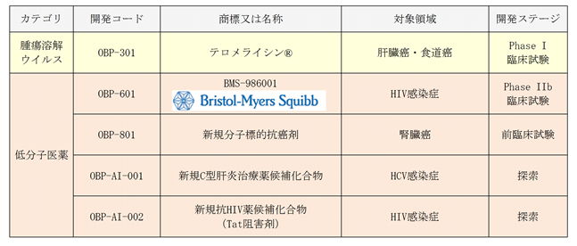 | 平成18年6月 | Yale大学(米国)と新規HIV感染症治療薬の全世界における独占的ライセンス導入契約を締結し、OBP-601として研究・開発に着手 |