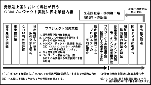 当社の実施するCDMプロジェクトの実施に係る具体的な業務内容は以下のとおりであります。