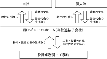 また、不動産販売事業を軸としながら、更なる顧客サービスの追求のため、平成17年3月に株式会社One’s Life ホームを設立して「建築事業」を開始し、お客様の戸建住宅の建築工事やリフォーム工事等のニーズにお応えしております。