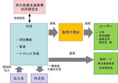 細胞シート再生医療事業は現在事業化準備段階にあり、当社は細胞シート再生医療第1号製品の早期事業化を目的とした事業提携の実現を目指しております。従いまして事業系統図は、事業提携先との提携内容等により具体化していく内容となることから現段階において事業系統図は記載しておりません。