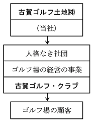Section titled “3【事業の内容】”当社の企業集団等は、当社と古賀ゴルフ・クラブの間で構成されており、事業はゴルフ場施設の所有賃貸の事業とゴルフ場の経営の事業を営んでおります。