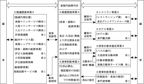 Section titled “3 【事業の内容】”当社グループは、当社、子会社12社及び関連会社2社で構成され、その事業は、海運関連事業、商事料飲事業、レストラン事業、ホテル事業、旅客自動車運送事業であります。