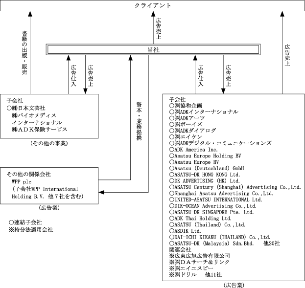 | 平成11年1月 | ・第一企画株式会社と合併し、商号を株式会社アサツー ディ・ケイに変更。合併に伴い、子会社が10社増加(うち統合、社名変更を経て当事業年度末日時点で連結子会社となっているのはDK ADVERTISING (HK) LTD.、DIK-OCEAN Advertising Co.,Ltd.、ASATSU Century (Shanghai) Advertising Co.,Ltd.の3社)。 |