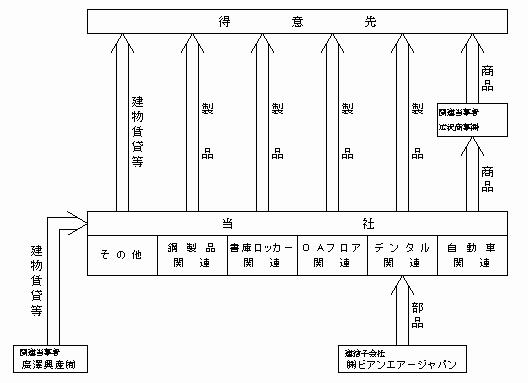 Section titled “3 【事業の内容】”当社グループ(当社及び当社の関係会社)は、当社及び連結子会社1社(㈱ビアンエアージャパン)で構成され、鋼製品関連、書庫ロッカー関連、歯科医療機器関連の製造販売を主な内容とし、自動車関連の仕入販売、さらに保守サービス等の事業活動を行っております。