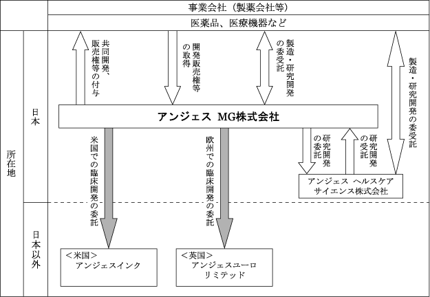 | 平成22年12月 平成23年9月平成24年10月 平成25年1月 | NF-κBデコイオリゴのアトピー性皮膚炎分野において、塩野義製薬株式会社と共同開発するライセンス契約を締結アンジェス ヘルスケア サイエンス株式会社(連結子会社)を設立田辺三菱製薬株式会社との間で「コラテジェン®」の米国における末梢性血管疾患を対象とした独占的販売権許諾契約を締結保有するジェノミディア株式会社の全株式を石原産業株式会社に売却 |