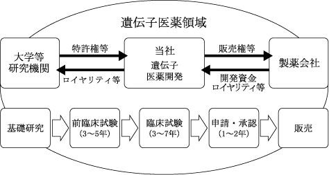 | 平成15年9月 | 会社分割制度を用いてグループ内の組織再編を行い、グループ内(当社及び連結子会社のジェノミディア株式会社)に分散するHVJ-E非ウイルス性ベクター事業に関する人材、資産、知的財産権をジェノミディア株式会社に集約化 |
