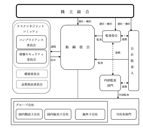 当社は、当社グループの事業持株会社として、役員・従業員派遣を通じてグループ会社に対する企業統治を行うとともに、当社グループにおける飲料・食品事業全般の事業戦略・活動方針の策定、予算策定等を行い、当社グループの中枢として機能しています。また、このような当社グループの中枢としての業務のほか、当社は国内清涼飲料事業のマーケティング・商品企画を担当し、当社グループの海外事業展開に資する海外M&A戦略の策定、M&A相手先の選定も行っています。国内事業の製造事業及び販売事業については以下に記載するとおり、グループ各社にその権限を委譲し、グループ各社が高度の専門性を発揮し、グループ全体として迅速な事業活動の展開を行うべく、当社はグループビジョンの構築、グループ全体での事業の拡大・推進の役割を担っています。